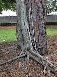 Strangler fig (ficus aurea) - ca să-l țină în șah, localnicii îi taie cu regularitate mulțimea de rădăcini pornite în căutare de noi victime.