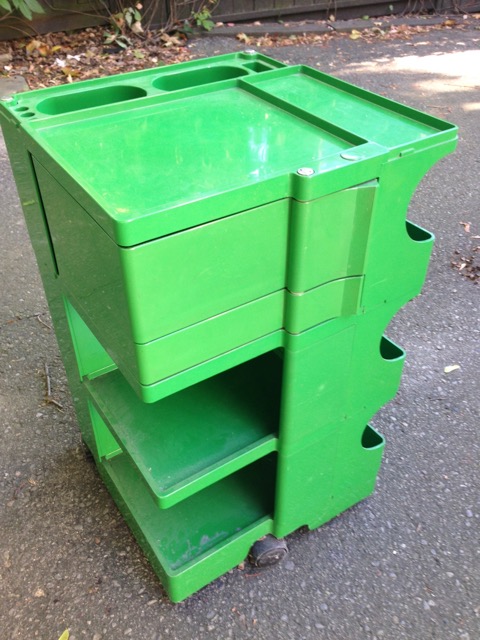 Viața pe care am dus-o după plecarea din România a rezultat într-o totală lipsă de atașament pentru bunurile materiale. Un exemplu a fost tablota lui Joe Colombo ce ne-a folosit credincioasă aproape 40 de ani, începând cu găurile de păstrat rapidografele în apă. Când ne-am mutat ultima oară ne-am zis că nu mai avem nevoie de ea și am părăsit-o în curte. După un timp i-am găsit eu o întrebuințare în noua locuință. M-am dus cu mașina la casa ce o vândusem unui constructor și care a rămas neocupată până astăzi. Ca o bună româncă am păstrat o copie a cheilor casei și am intrat pe șest în curte. Acolo am regăsit-o murdărită de intemperii dar bucuroasă de revedere… semnătura din colțul stânga jos mi-a zâmbit prin praf. I-am tras un jet de apă, constatând că s-a păstrat incredibil de bine, după care i-am făcut o poză în situ și am dus-o la noua locuință.